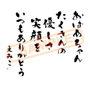 ■真面目な文字とちょっとくだけた文字の2種類をお送りしました。おばあちゃんも読みやすい真面目な字の方をお選び頂きました。(店長) |