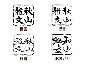 ■筆文字名刺(オーダーメイド)オリジナルの筆文字名刺で個性を表現してみてはいかがですか? 筆文字名刺・たてFは落款風のお名前を真ん中に、住所等を左側にレイアウトいたします。 片面・両面、用紙の種類も選ぶことができます。 |